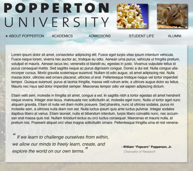 Popperton University is a fake *cough* real university I invented (technically founded by Phillip "Popcorn" Popperson) a few years back to encourage my inner autodidact. At the time I was seeking to learn from people, places, experiences, the internet, and books. Anyone can "enroll", all you need to do is write an acceptance letter for yourself, decide what classes you want to take, and write a schedule for yourself. Despite its lack of formal accreditation, Popperton U. has seen steady enrollment since it was founded.